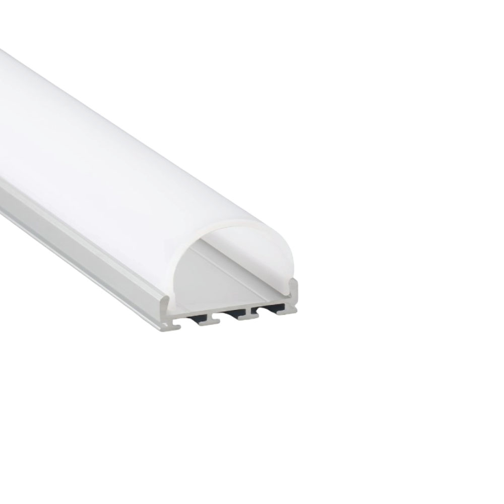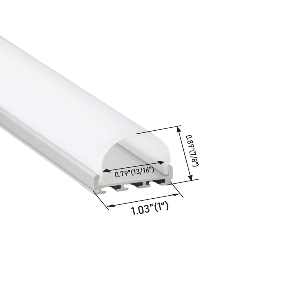 The Double Wide Round Aluminum Channel is a high-quality lighting solution made from premium-grade Aluminum 1060 with a durable silver anodized finish for exceptional corrosion resistance. It includes a polycarbonate (PC) diffuser that provides smooth and uniform light output, making it perfect for professional lighting applications. This channel is 6.4 ft long and designed for LED strips up to 0.79 inches wide. It is optimized for 120 LEDs per 3.28 ft strips to prevent light dots effectively. The surface-mounted design allows easy installation, and the wide 160° beam angle ensures efficient and even illumination. This sleek and versatile channel is ideal for creating precise and stylish lighting setups.