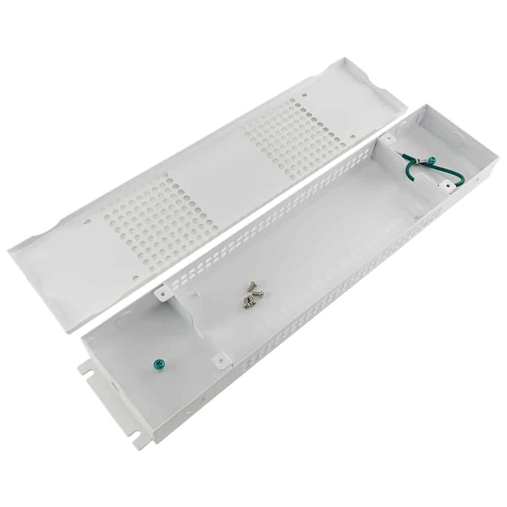 This ETL-listed junction box is designed for seamless integration with 25W and 50W LED drivers in indoor lighting applications. Ideal when the power supply isn’t plugged into an outlet, it supports dimmable 24V LED drivers with no minimum load required. Featuring screw terminal connections and pre-drilled knockout holes, it offers safe, reliable, and easy installation for residential and commercial setups.