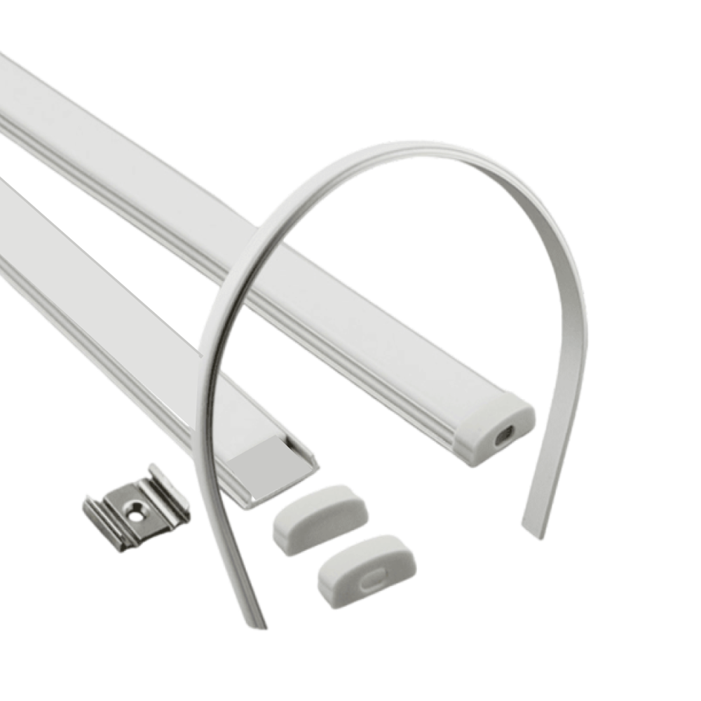 Our PC Covers (Polycarbonate) snap onto the Bendable Aluminum Channels, that house LED Strip Lights. This cover is available in a frosted finish. PC covers ensure seamless illumination. They shield the LED strips from dust, moisture, and physical damage, extending their lifespan.