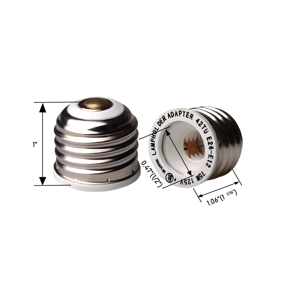 The E26 Male to E12 Female Adapter allows you to convert a standard E26 medium base socket into an E12 candelabra base, enabling the use of smaller E12 bulbs in standard fixtures. Made from flame-retardant PBT with high-conductivity copper contacts, this adapter is a safe, durable, and easy solution for lighting conversions. Ideal for chandeliers, pendant lights, and other decorative fixtures, it’s perfect for both residential and commercial applications.