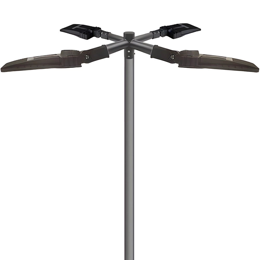 The Quad 90 Degree 4 Horizontal Tenon Adapter is a robust 4-inch spoke mounting bracket specifically designed for 2-3/8″ round light pole tenon tops, seamlessly converting them into a 2-3/8″ slip fitter extension arm. This versatile adapter allows for mounting up to four fixtures, making it perfect for various lighting applications. Crafted from anti-rust stainless steel and featuring an elegant dark bronze finish, it’s ideal for enhancing the functionality of single LED street lights, parking lot lights, or post-top light fixtures.