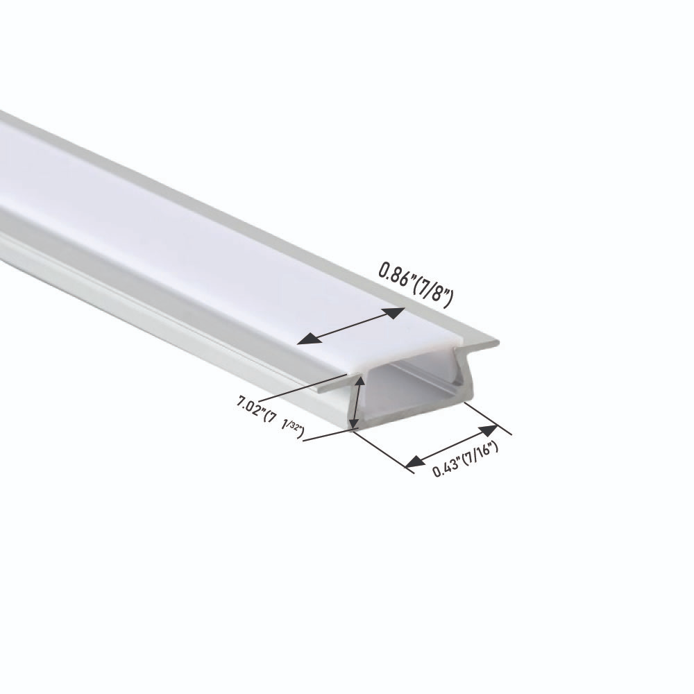 Enhance your lighting setup with the Slim Recessed Aluminum Channel, designed for LED strip lights up to 0.39 inches wide. Crafted from durable 1060 aluminum with a sleek silver anodized finish, it provides a clean, professional look while ensuring optimal heat dissipation. Ideal for both residential and commercial use, this channel offers customizable cover options (frosted, black, clear, or milky) to achieve the perfect lighting effect. Its recessed design ensures seamless integration into surfaces, making it perfect for cabinets, offices, and indoor architectural lighting.