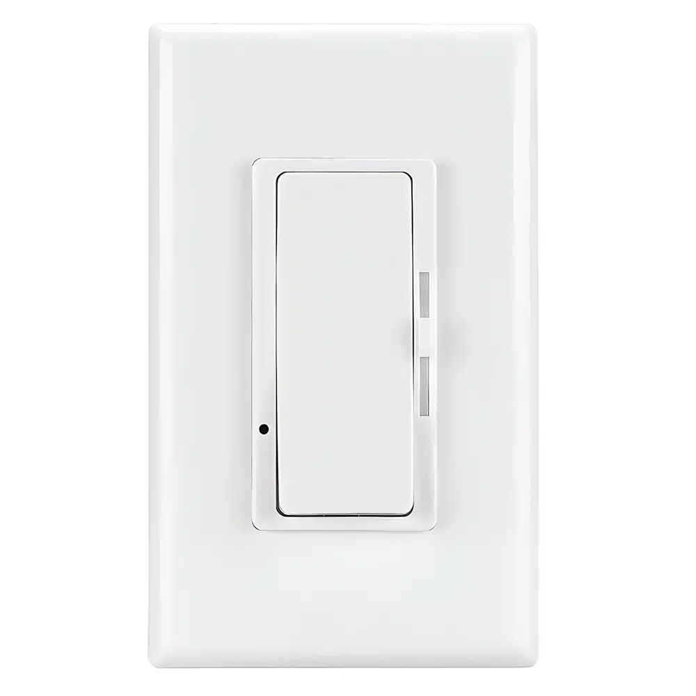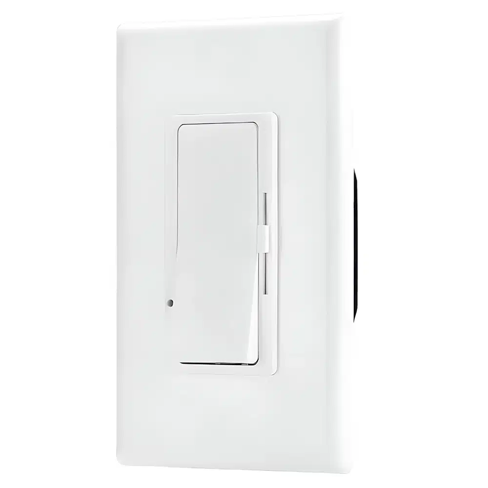 Our Décor 0-10v Dimmer Light Switch has a modern decorative look and feel. You barely notice the slim dimmer at the side of the Paddle Rocker switch. It has precise dimming capability for a smooth light transition. You will want to order our Décor Wall Plates (sold separately) with this light switch.
